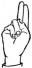 На ћирилици написано КОСТАДИН БУГАРИНОВИЋ састоји се из 19 слова [?]. Исписано ћириличном једноручном азбуком за глувонеме: